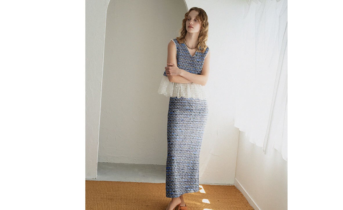SPROUT(スプラウト)ポンポンツイード スカート B/NAVY 36サイズ