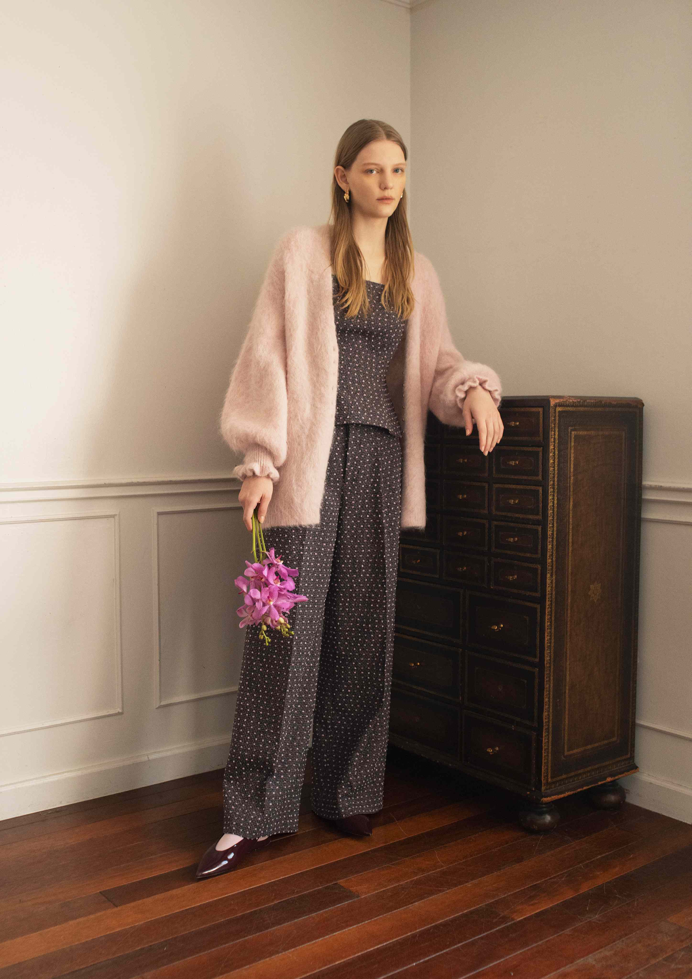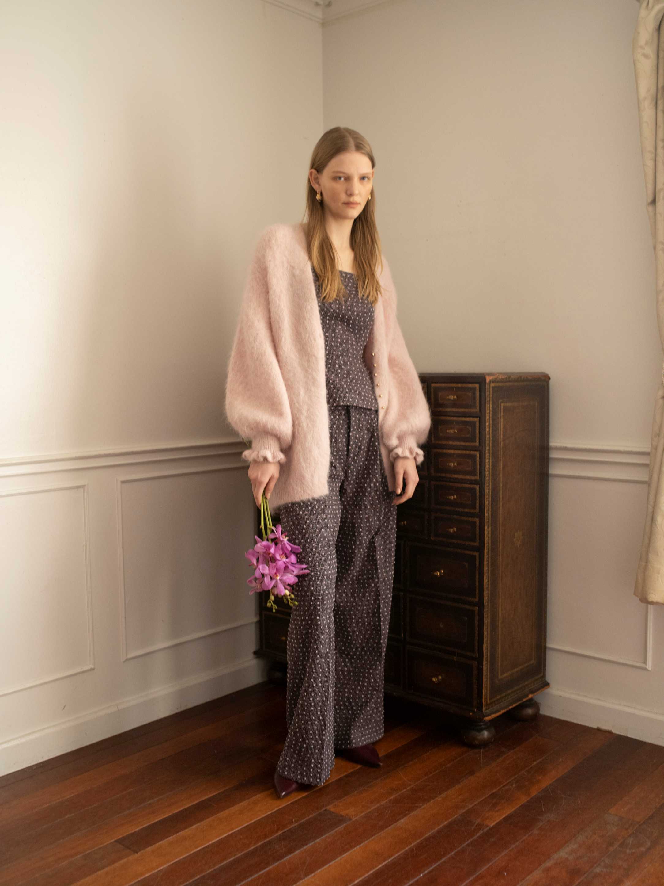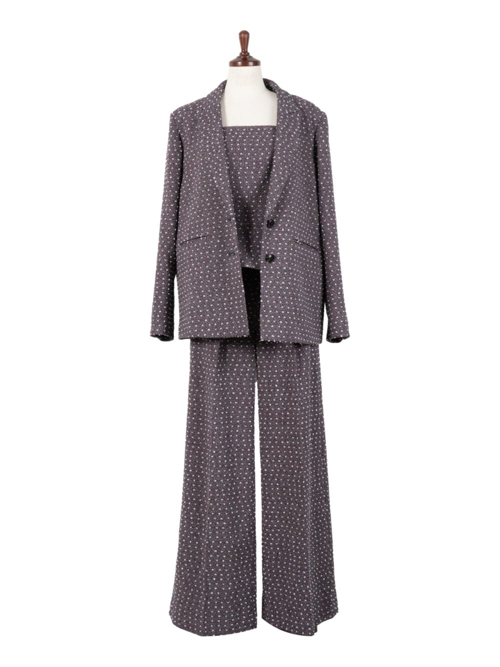 ペプラム・キャミ・ツイード・セットアップ・ドット