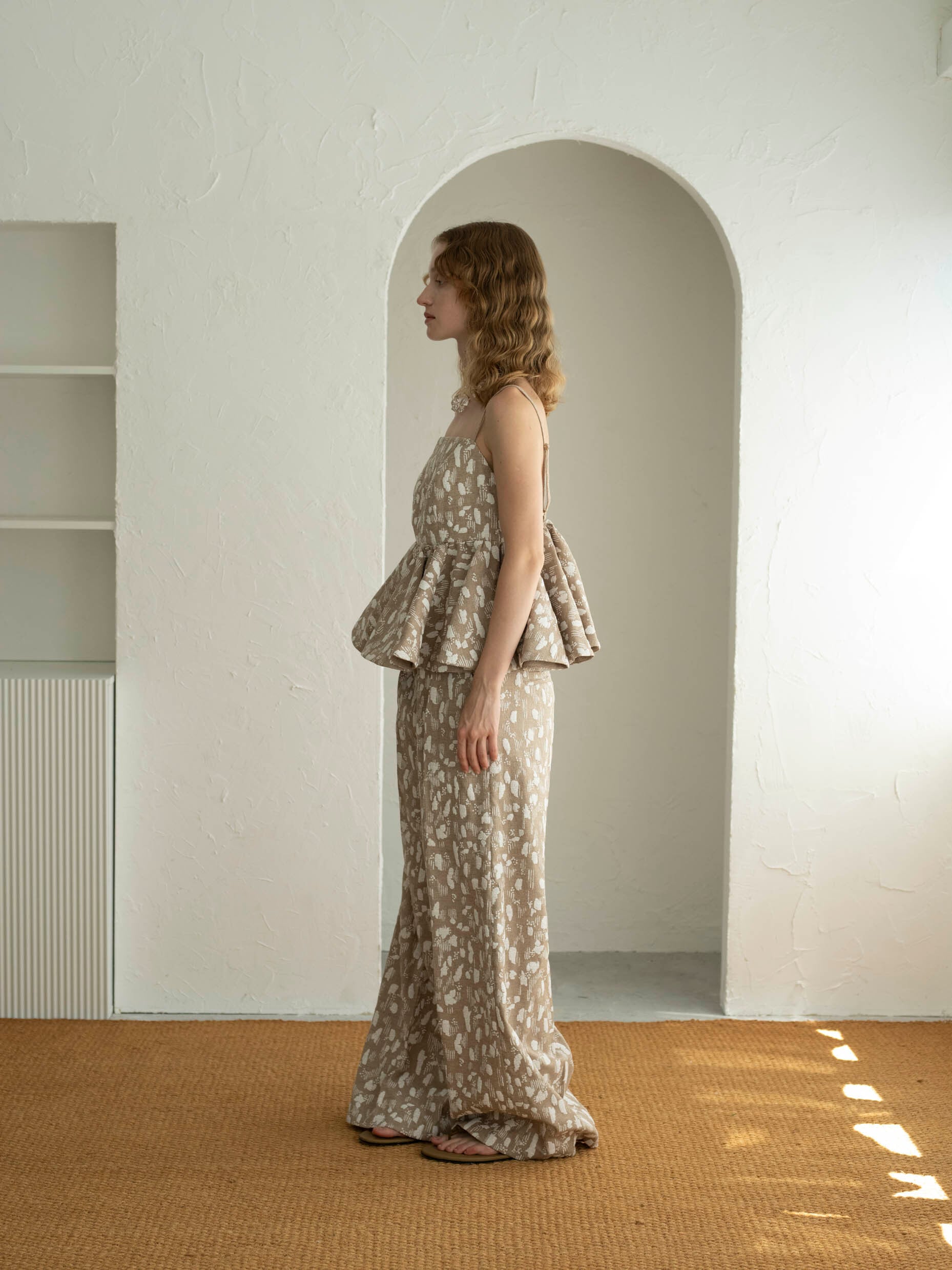 花びらの様に広がった、たっぷりギャザーペプラムがフェミニンなキャミソール。