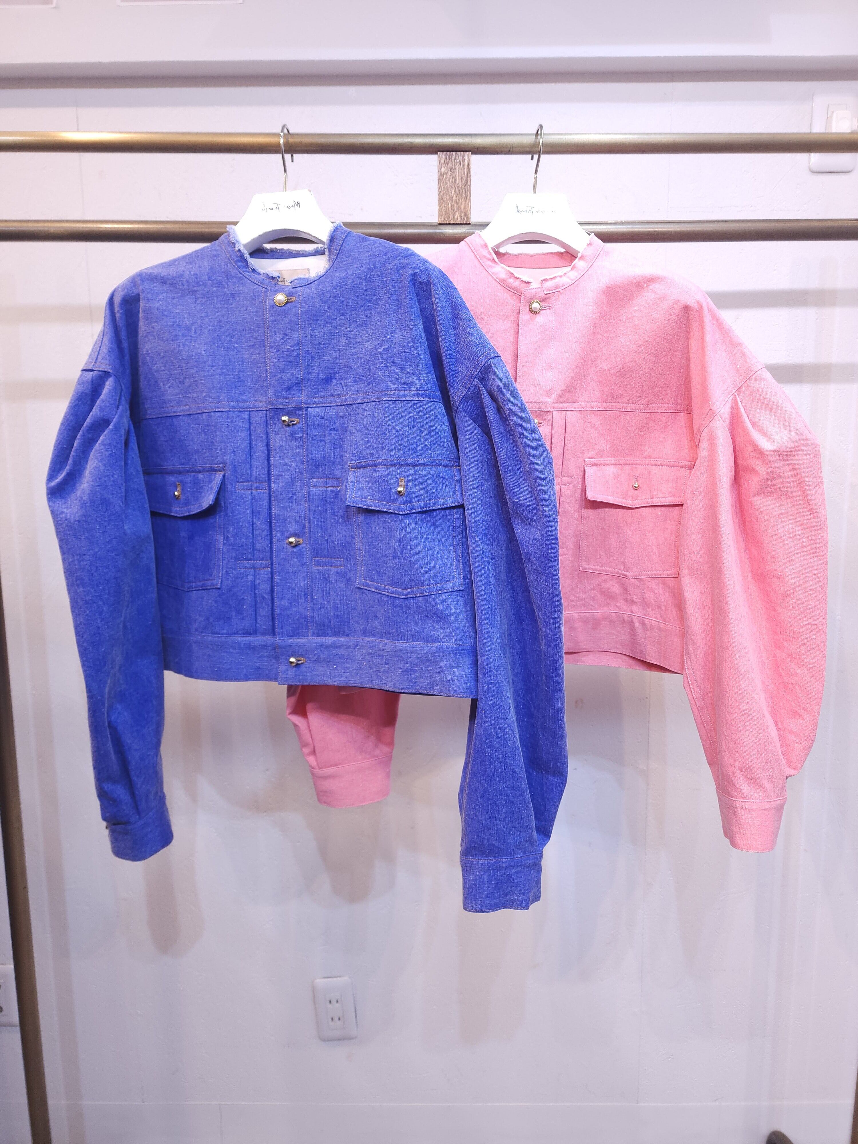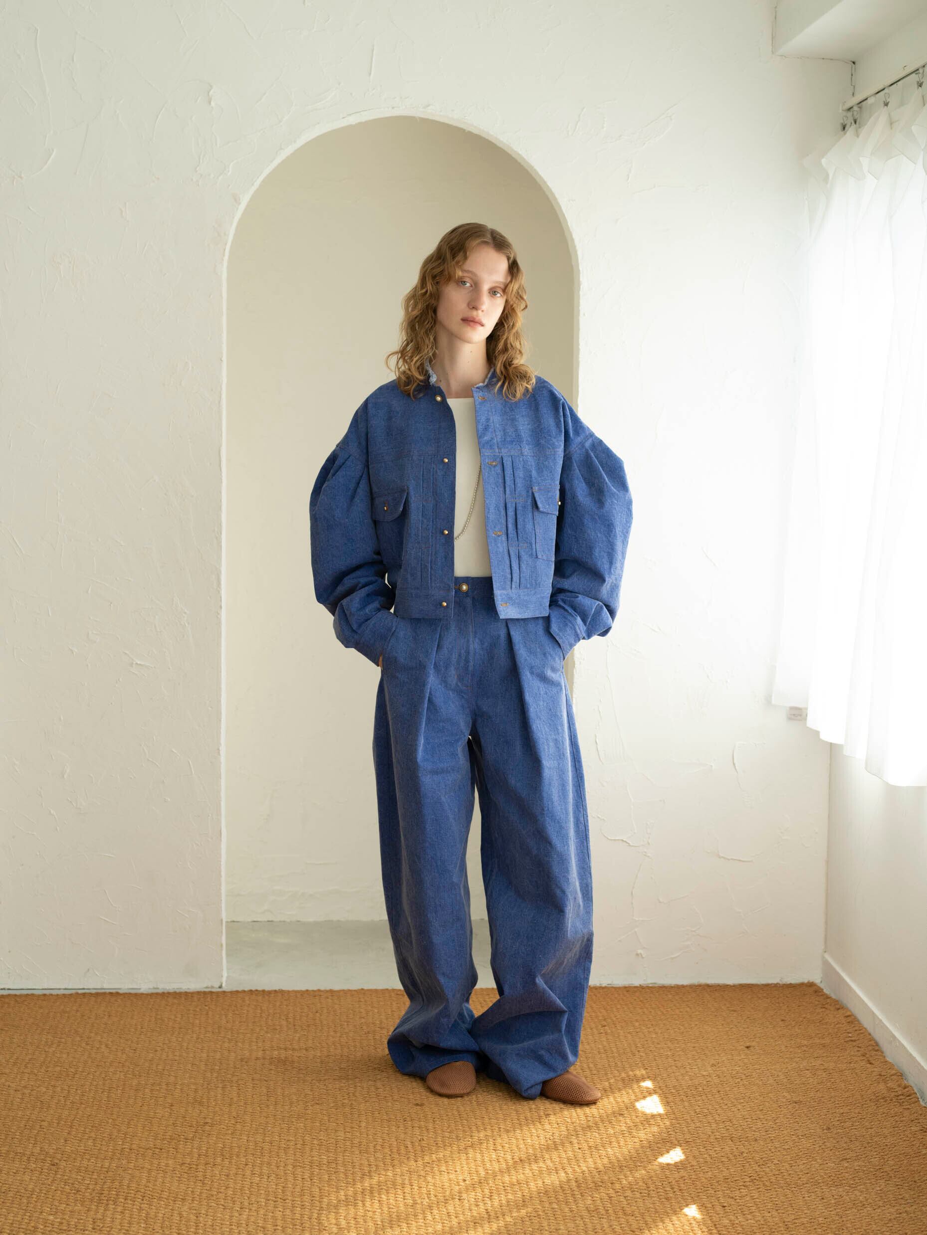 袖のボリュームデティールがレディライクなGジャン。第一釦のパール釦がアクセント。