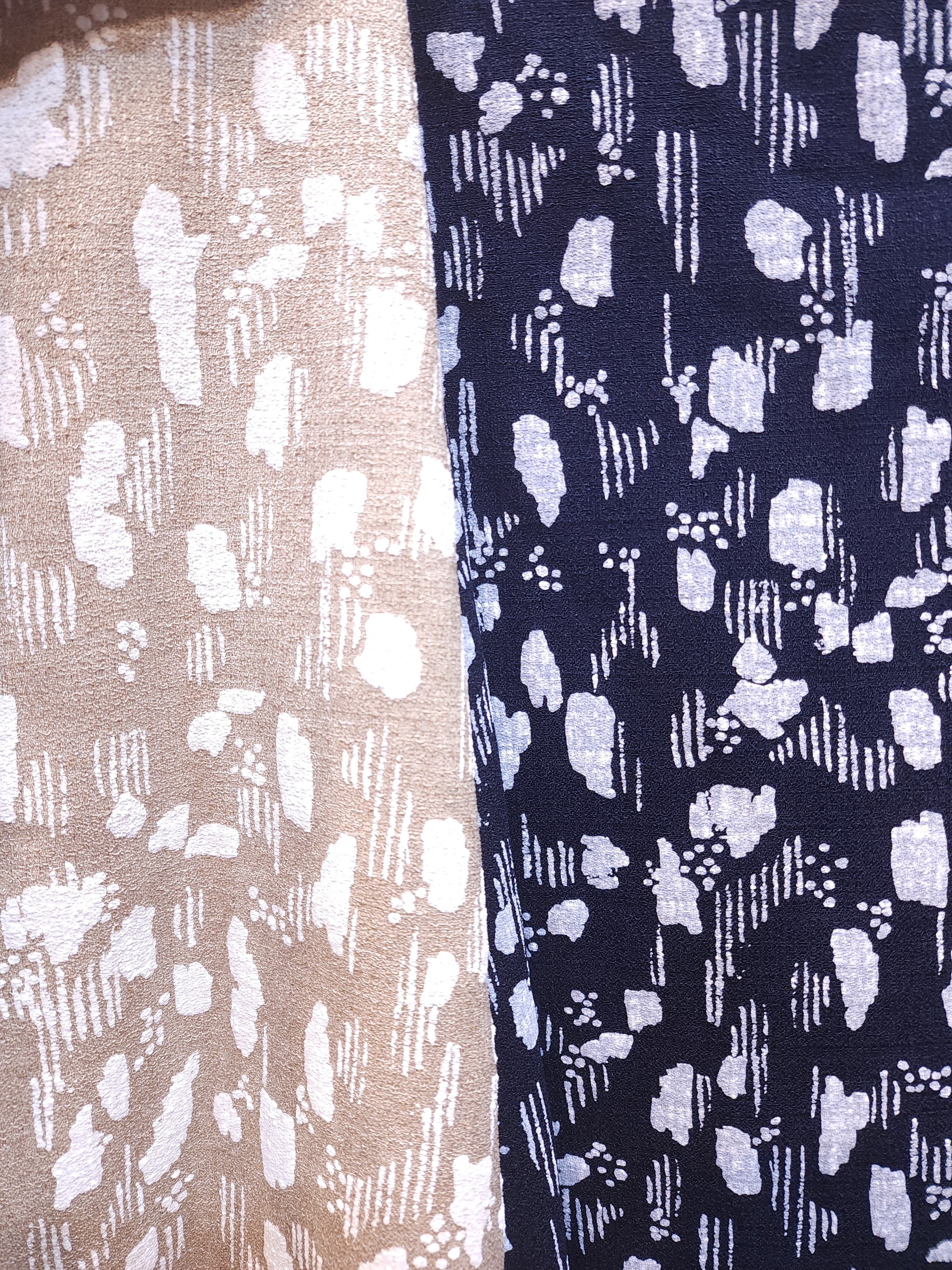 カチオン糸を使用し凹凸感を出したスラブ調合繊に発砲プリントを施し立体的に仕上げたオリジナル素材。