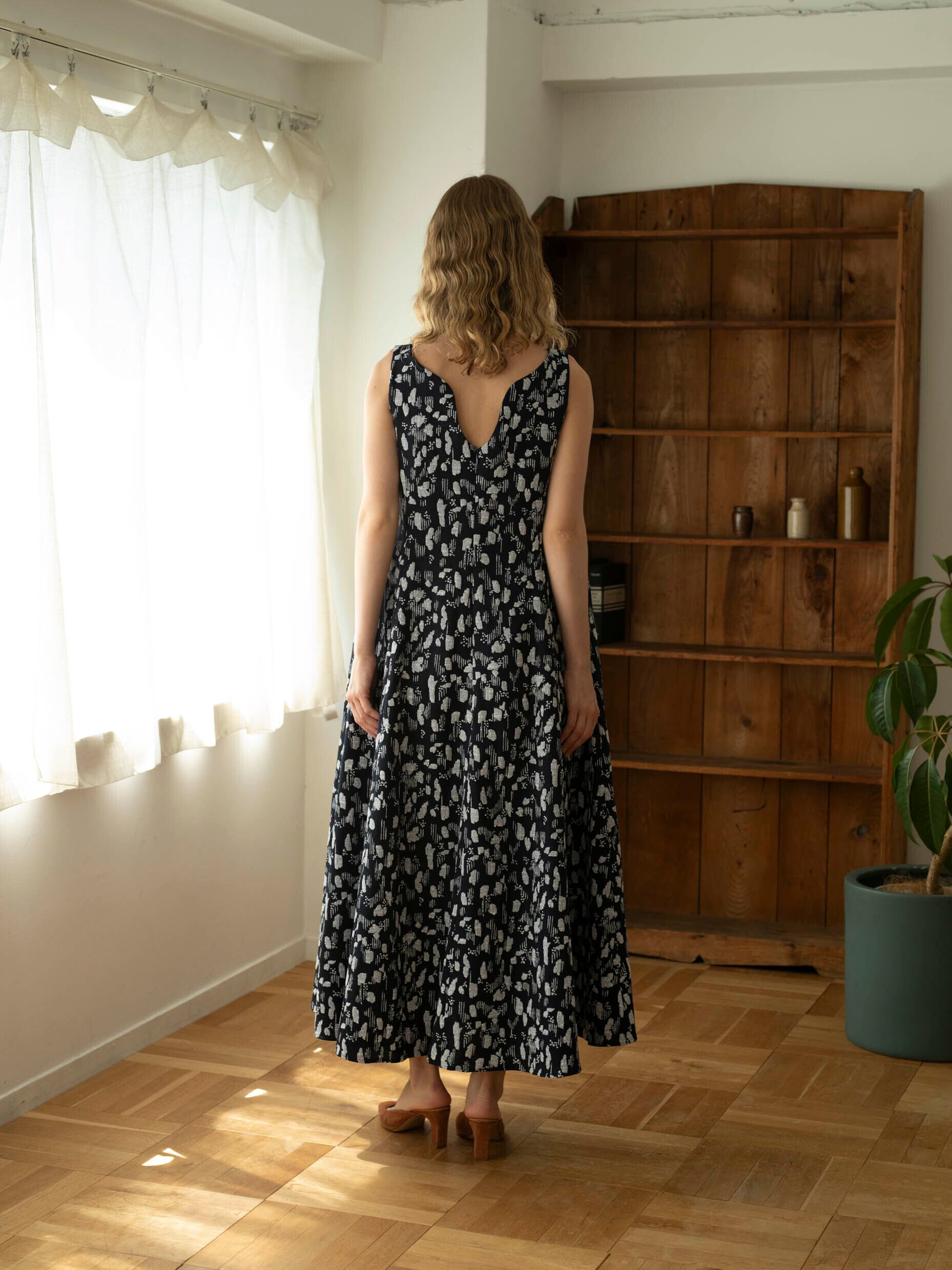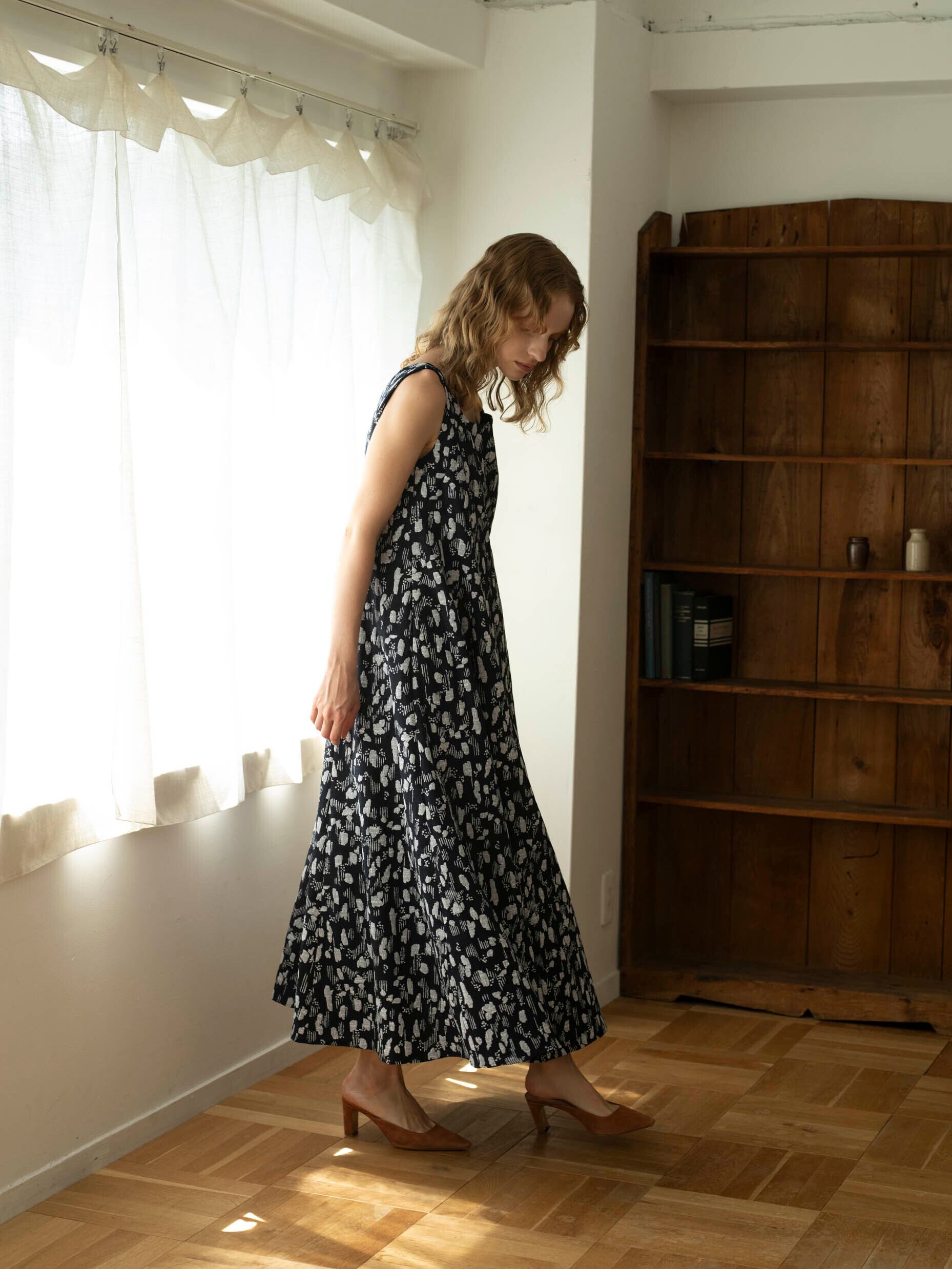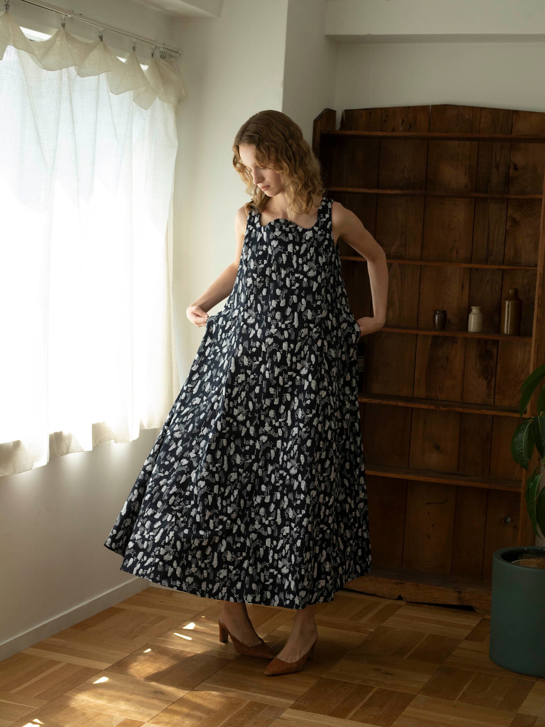 MONARDA(モナルダ)スラブフォームプリントワンピース B/NAVY×WHITE
