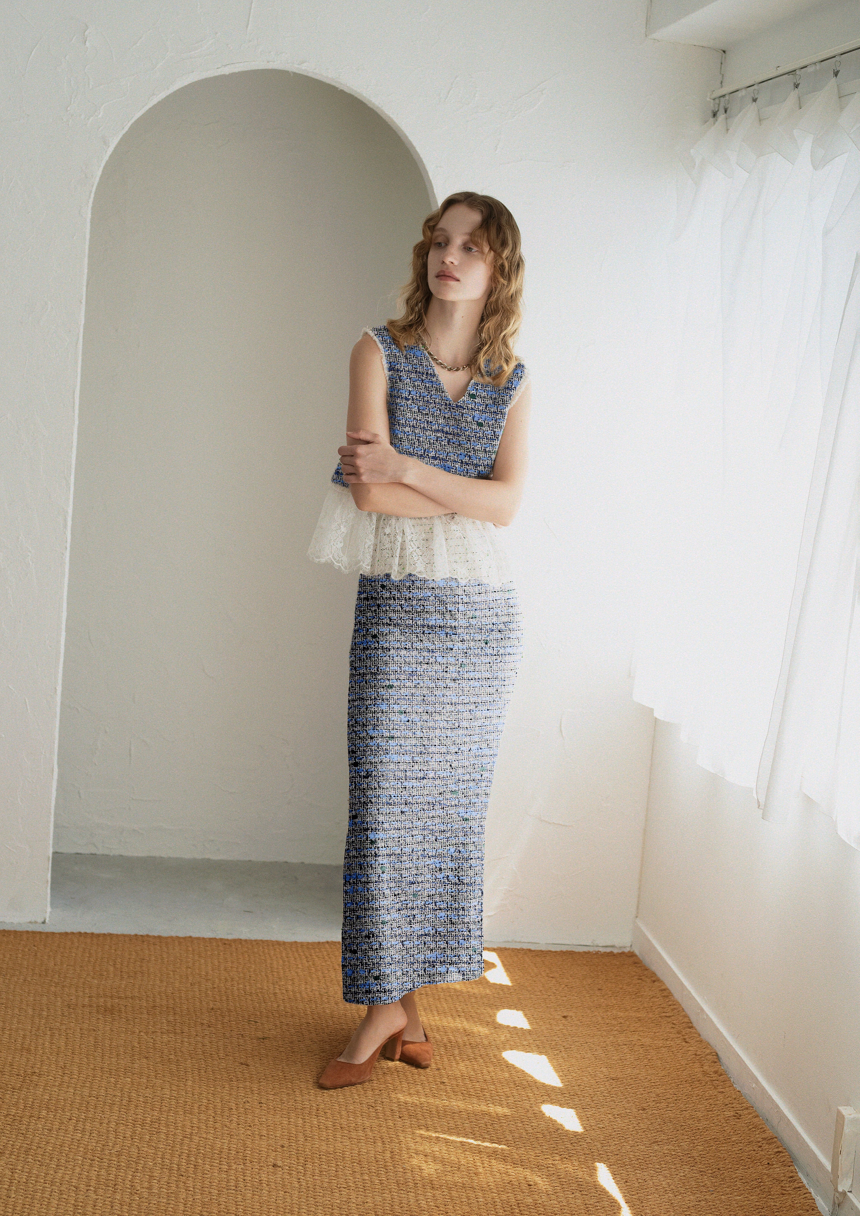 《柔らかな表情のツイードで、春の雰囲気を纏うスカート》